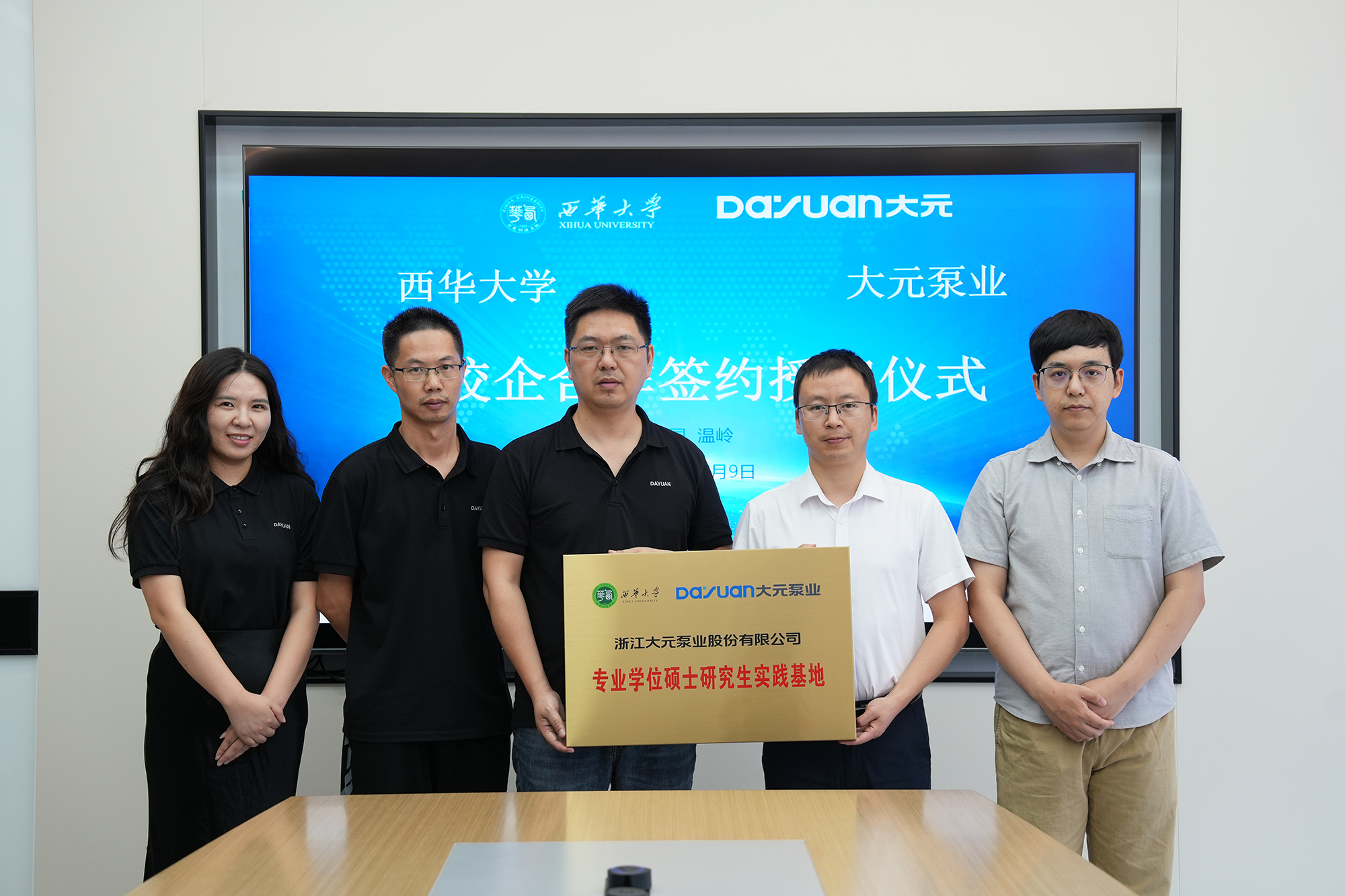 在与会嘉宾的见证下,双方代表签署了《校企合作框架协议》,明确了在共建实践教学基地、联合开展技术攻关、实施定制化人才培养等多方面的合作框架。随后,西华大学代表叶道星教授向大元泵业授予“专业学位硕士研究生实践基地”牌匾,标志着双方战略合作的正式启动。
