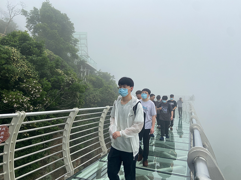 早上8点,大元成员们在公司门口集合出发,乘车至温岭市龙门沙滩,领略滨海风光独特,金黄沙滩、多奇礁异岩,正是春日踏浪之胜地;乘入门观景电梯而上,穿过观景台,便可见长长的玻璃桥沿着山轮廓而建,绵延至尽头,如一条长龙俯卧在东海之滨漫步在海上玻璃桥上,感受东海的浪漫。