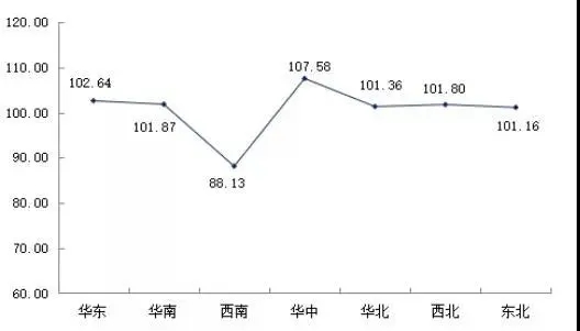 根据指数监测样本单位的泵业在全国的销售情况,按照区域分类体系,2020年3月,华中区的泵业区域价格指数居于各区域之首,为107.58点;其次是华东区,区域价格指数为102.64点;西南北区的泵业区域价格指数最低,为88.13点。相关结果可见图4。