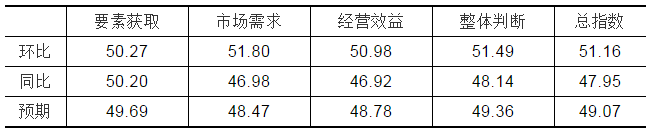 从分项指数来看,景气程度整呈现上升态势。其中,环比要素获取指数为50.27点,比上月上升了2.49点;环比市场需求景气指数为51.80点,比上月上升了9.35点;环比经营效益指数为50.98点,比上月上升了6.69点;环比整体判断指数为51.49点,比上月上升了7.05点。这表明三月份泵业生产企业的整体回暖,景气程度接近荣枯线。具体情况可见表5。