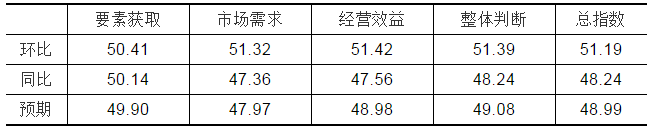 从分项指数来看,景气程度整呈现上升态势。其中,环比要素获取指数为50.41点,比上月上升了1.81点;环比市场需求景气指数为51.32点,比上月上升了9.25点;环比经营效益指数为51.42点,比上月上升了5.87点;环比整体判断指数为51.39点,比上月上升了6.80点。这表明三月份泵业生产企业的整体回暖,景气程度接近荣枯线。具体情况可见表6。