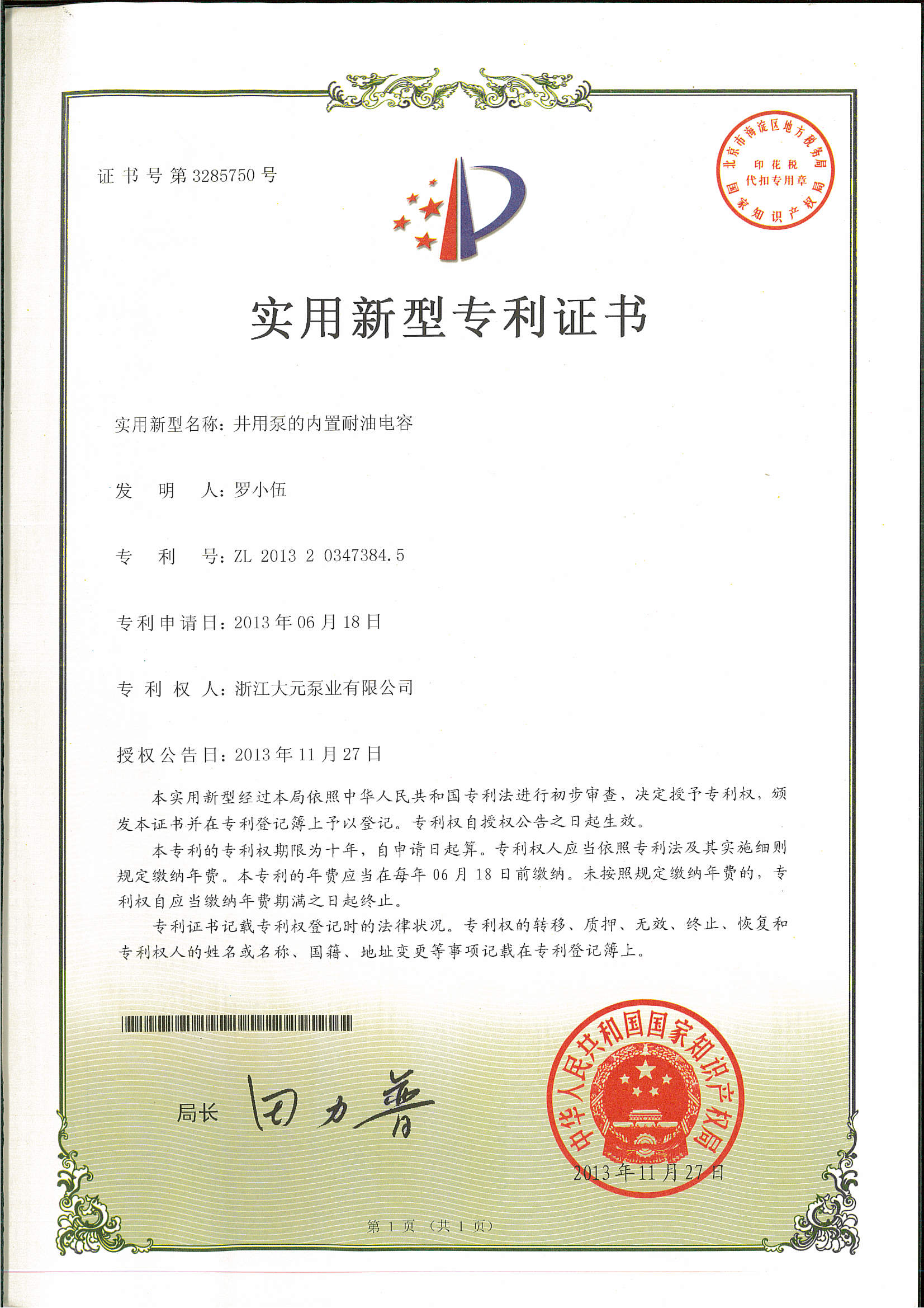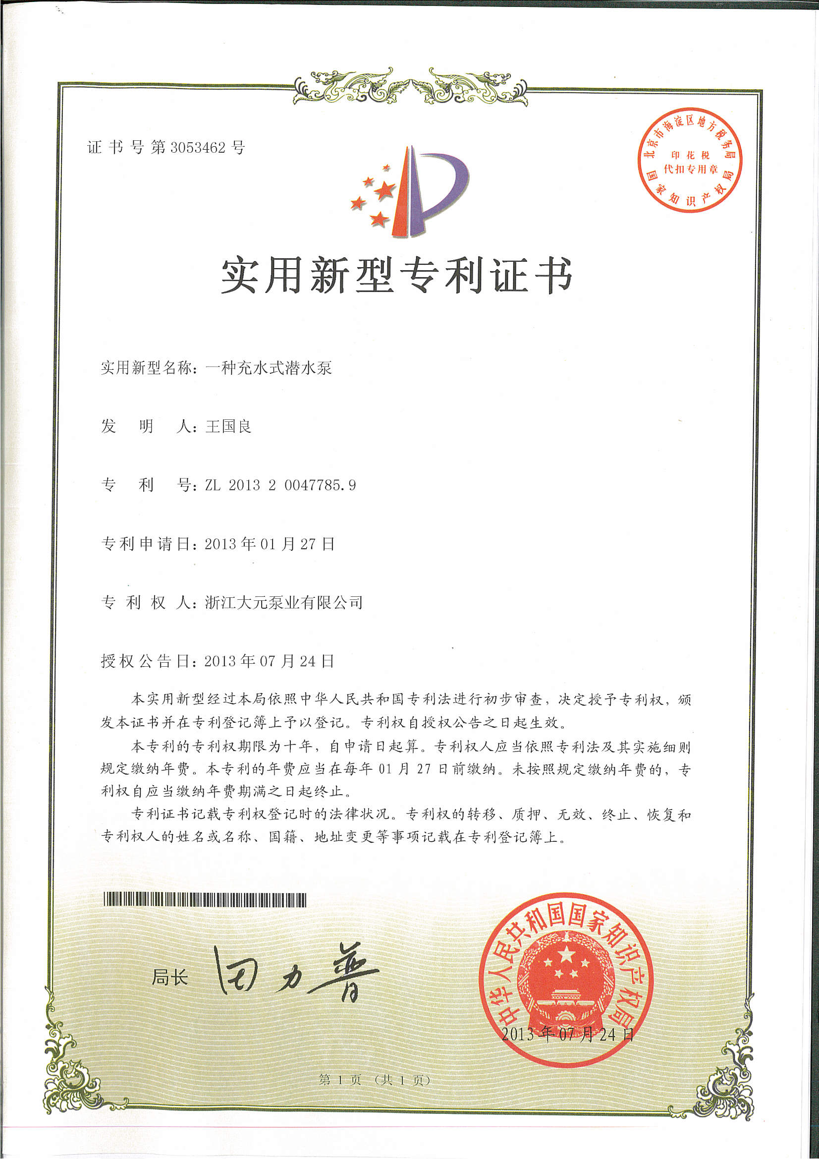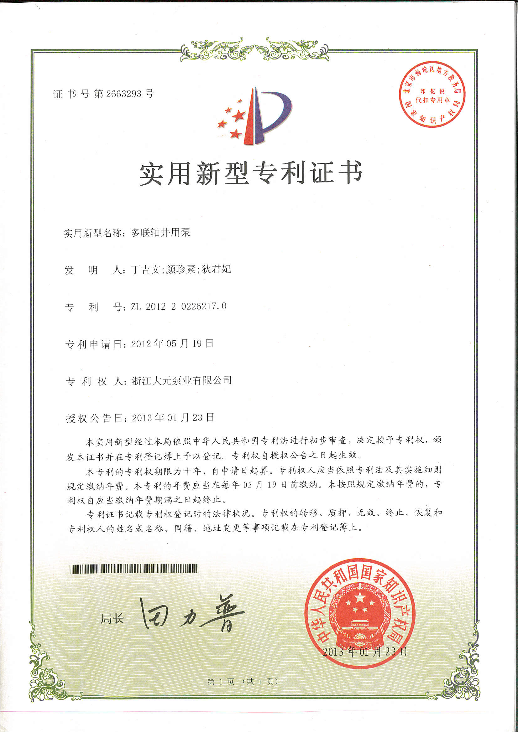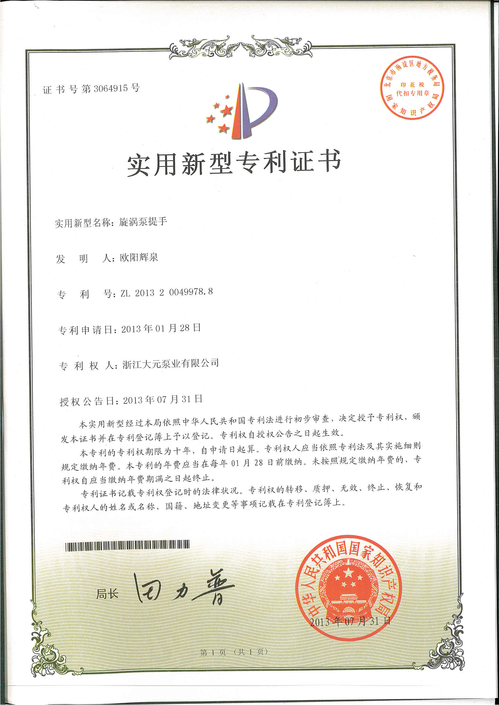 浙江大元泵业股份有限公司