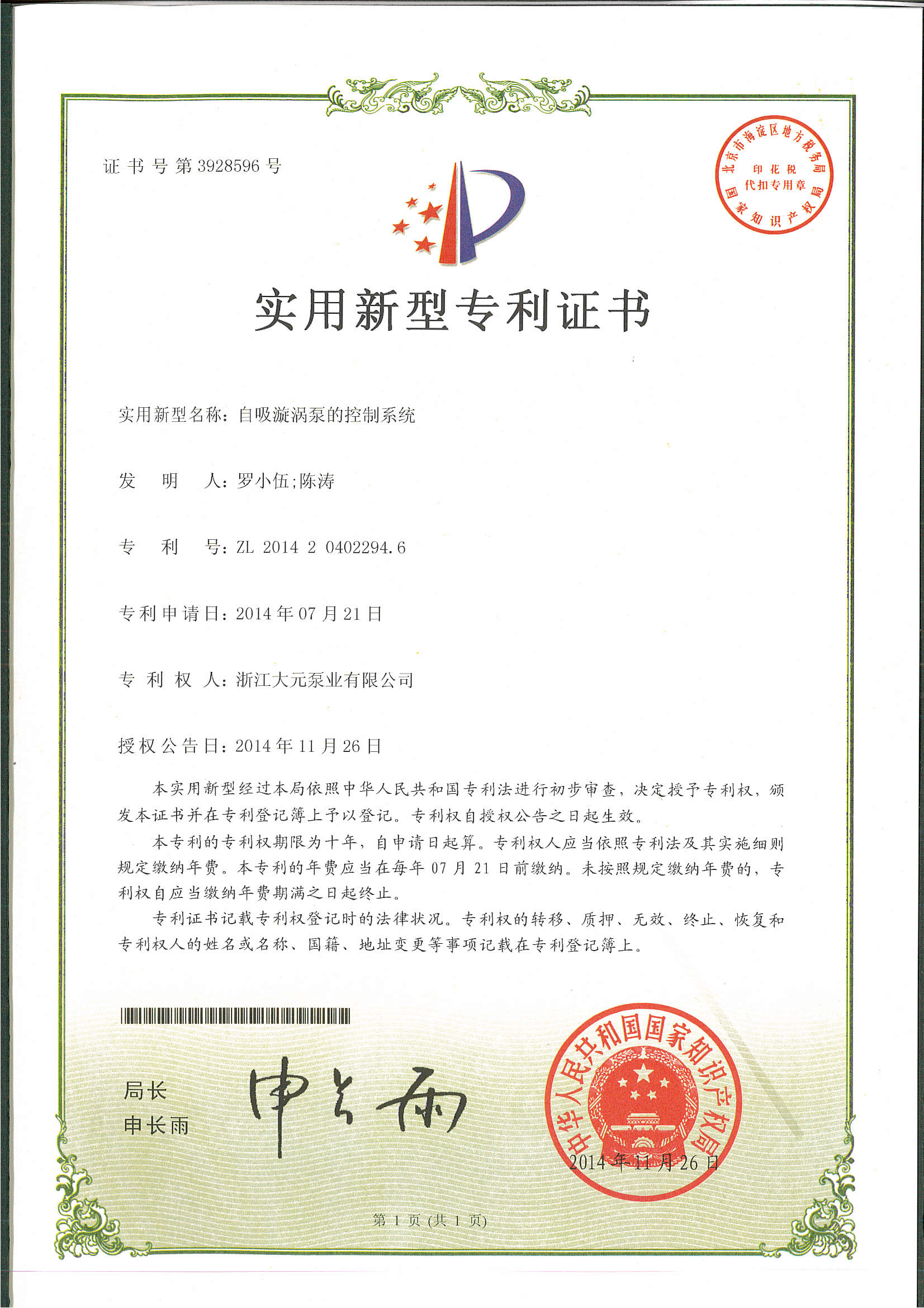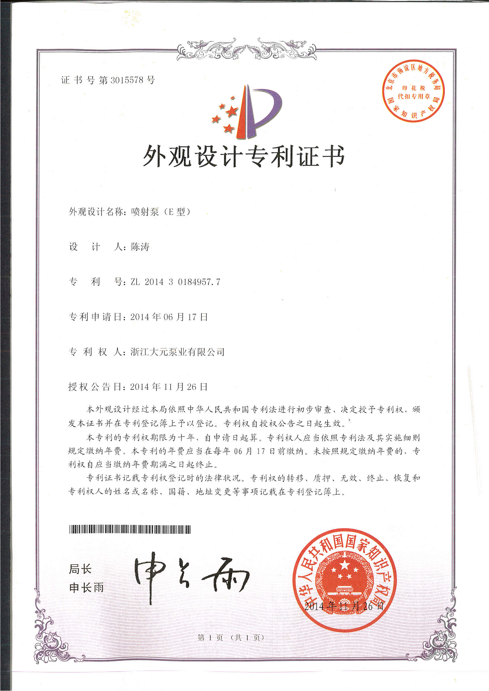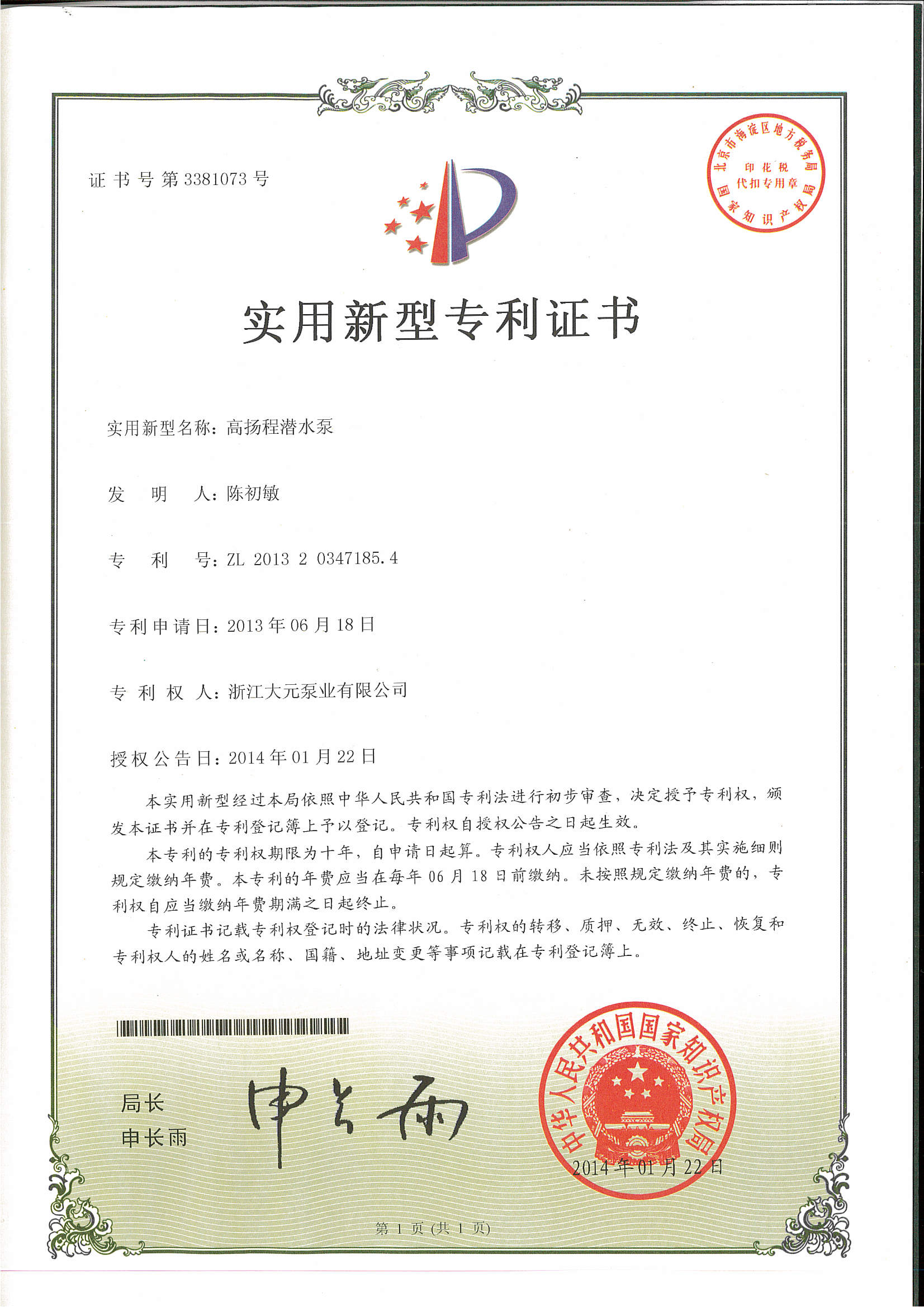浙江大元泵业股份有限公司