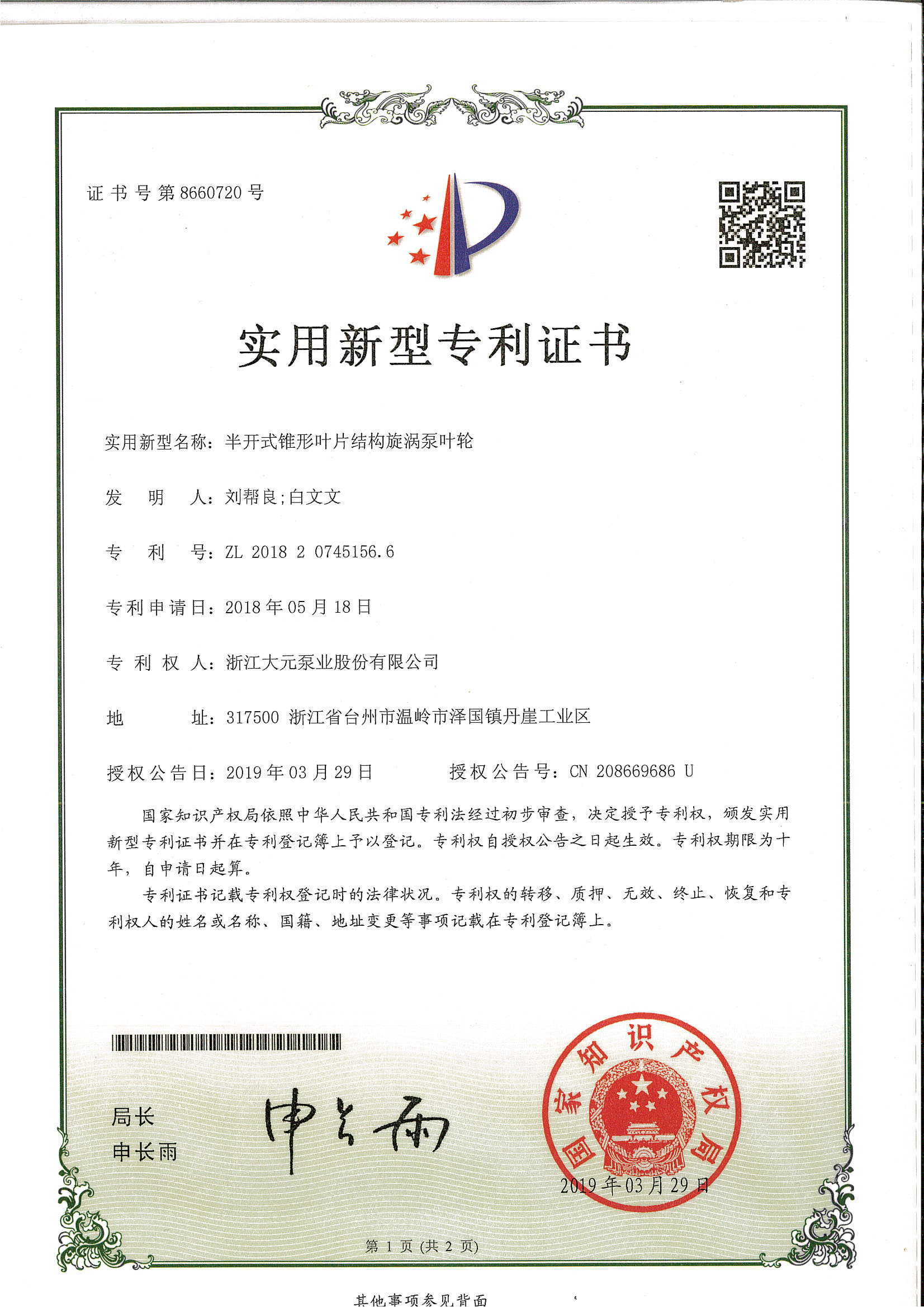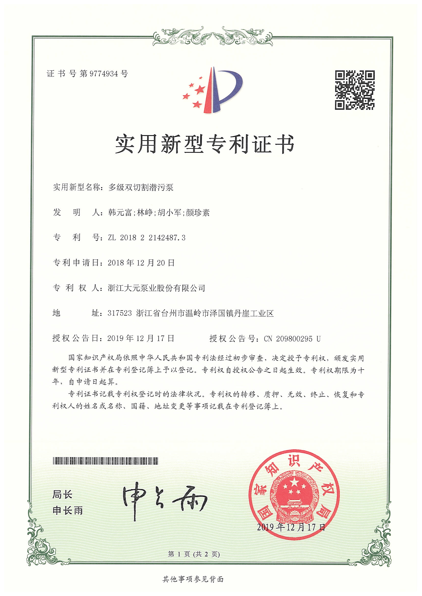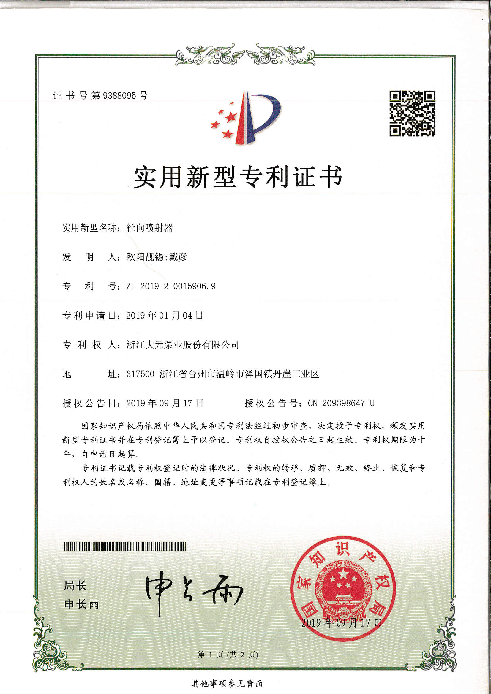 浙江大元泵业股份有限公司