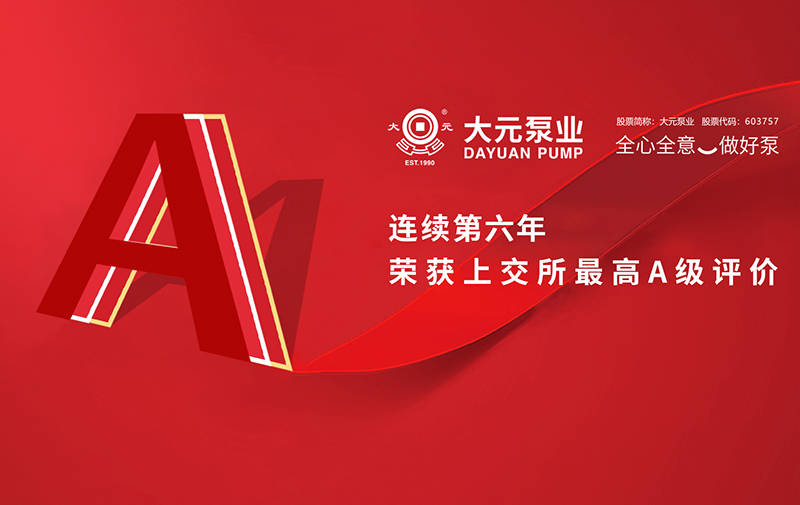 近日,大元泵业收到上海证券交易所《关于2023-2024年度信息披露工作评价结果的通报》,在2023-2024年度上市公司信息披露工作评价中公司再次荣获最高评级“A”级,这也是公司连续第六年获此殊荣。