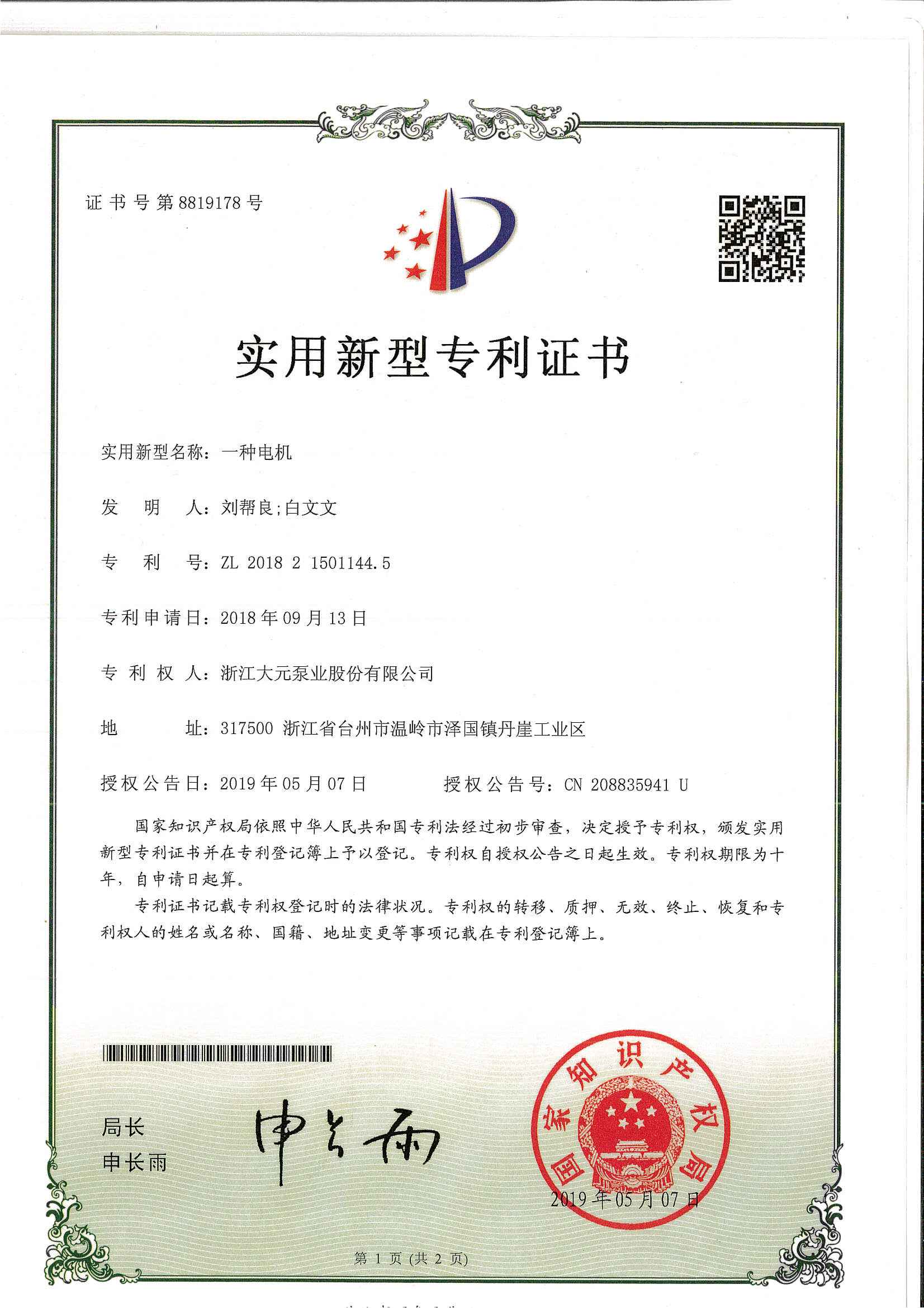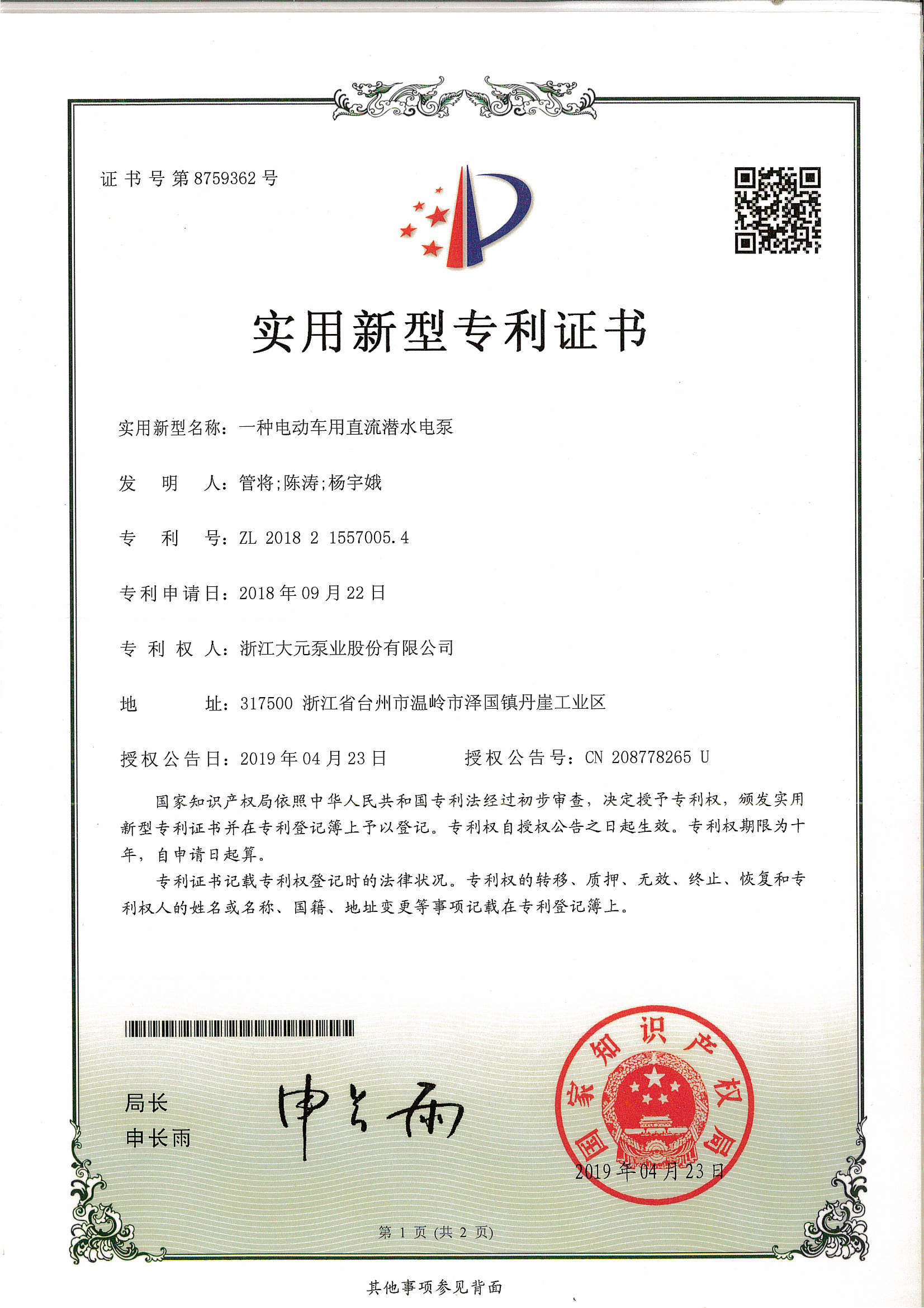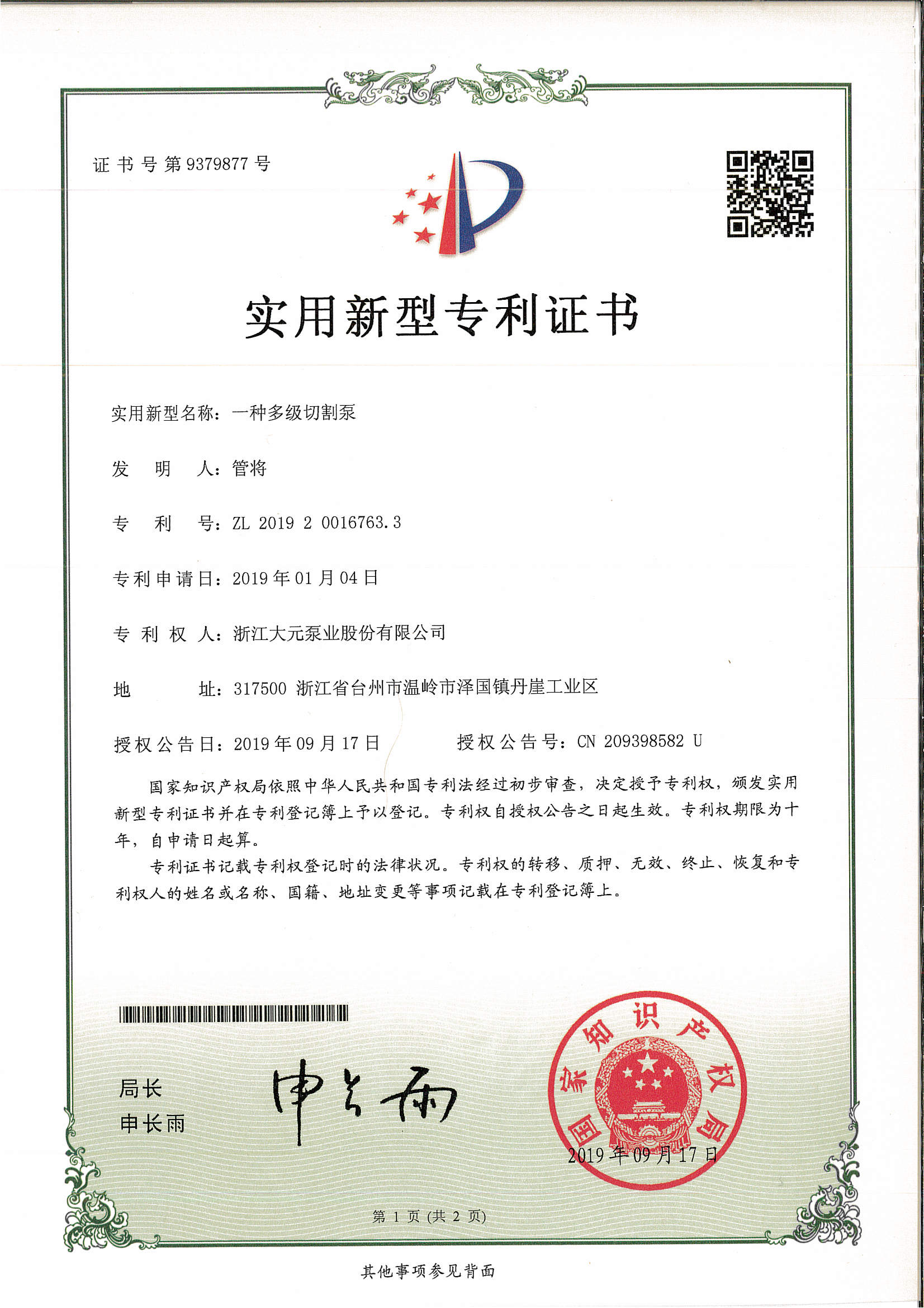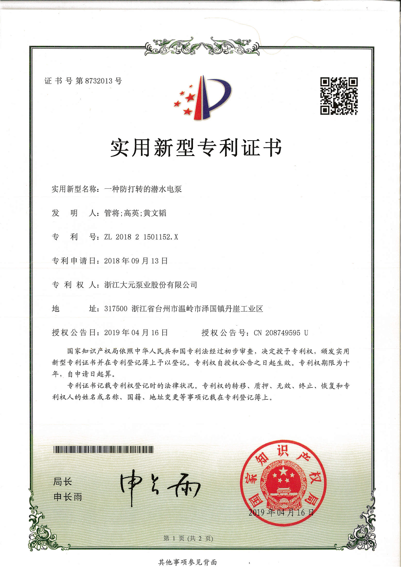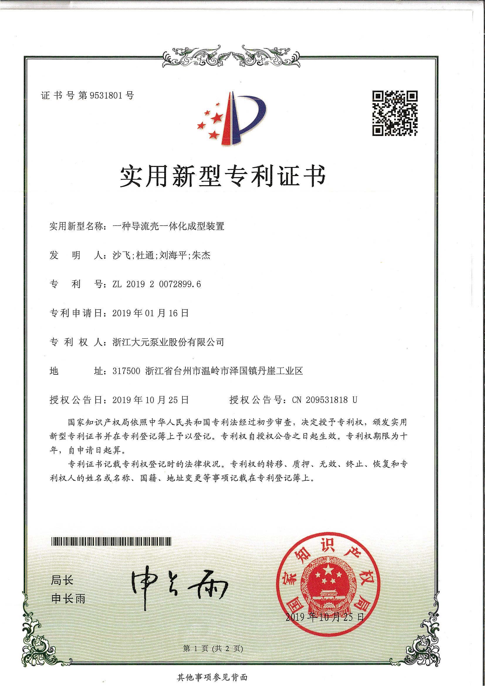 浙江大元泵业股份有限公司